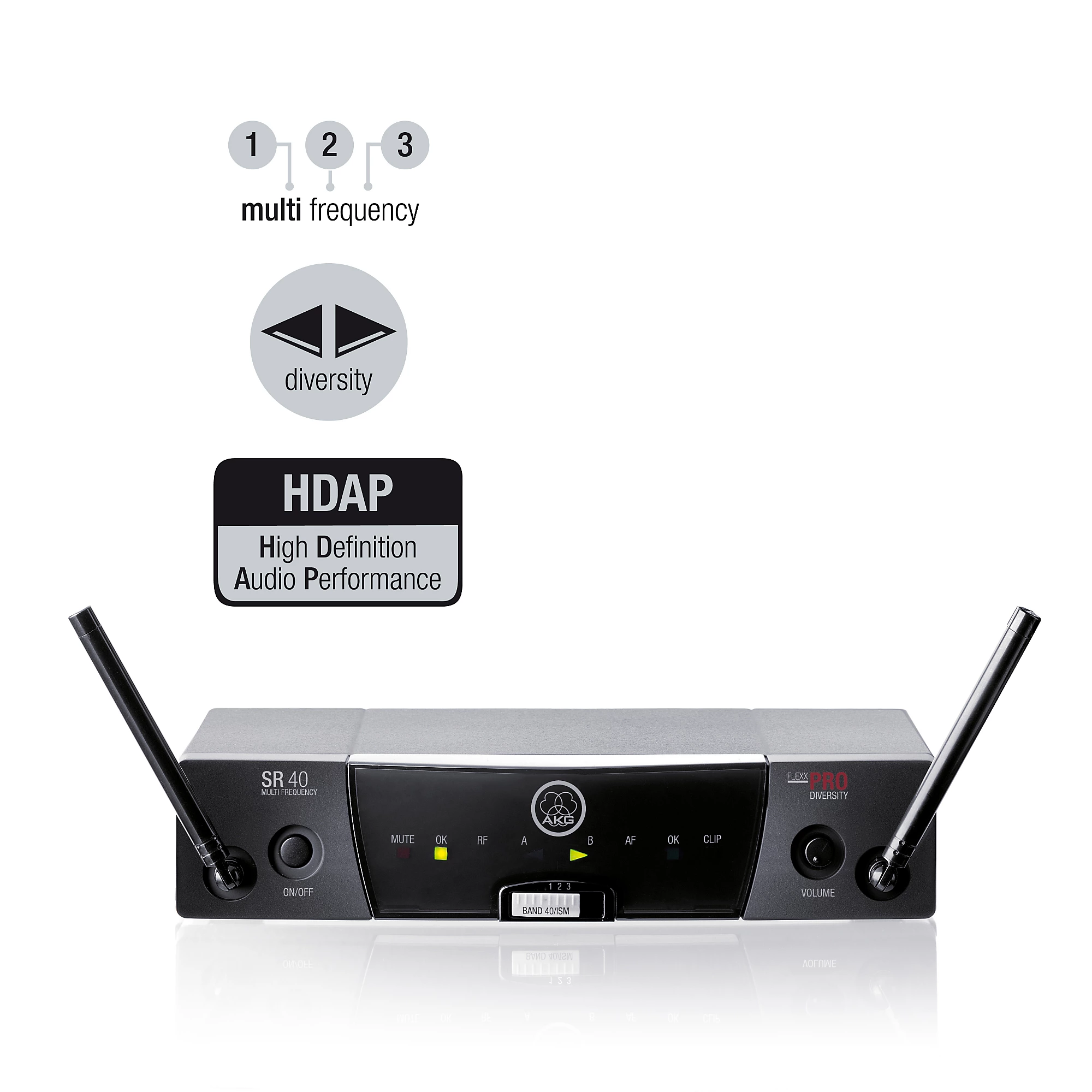 The SR 40 FLEXX Receiver provides the robust foundation for high-fidelity wireless audio transmission, featuring technology typically found in higher-end professional systems.