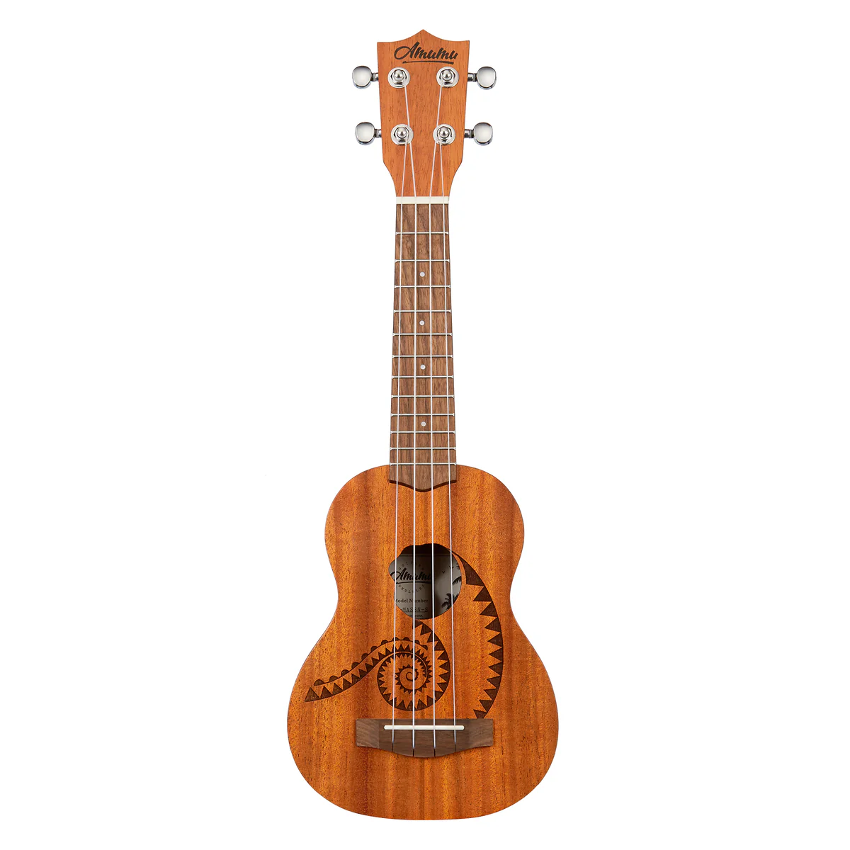 The Amumu NTLUS-S soprano ukulele is specially designed with unique Nautilus Shape by laser engraving, the Nautilus shape is combined with the soundhole shape and the engraving patterns together. Besides the unique design, the sound is big and sweet, it is a good choice for both beginners and professionals. The Amumu NTLUS-S soprano ukulele comes with a thick padded bag for travelling hassle free.
