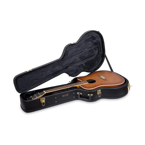 Crossrock CRW500D Dreadnought Guitar Case (Hard Shell), features multi-ply construction with rugged textured exterior with matching chrome and gold locks and hinges. All guitar cases have padded super soft plush interior, integrated neck support and built in spacious accessory compartment and a comfortable moulded handle.