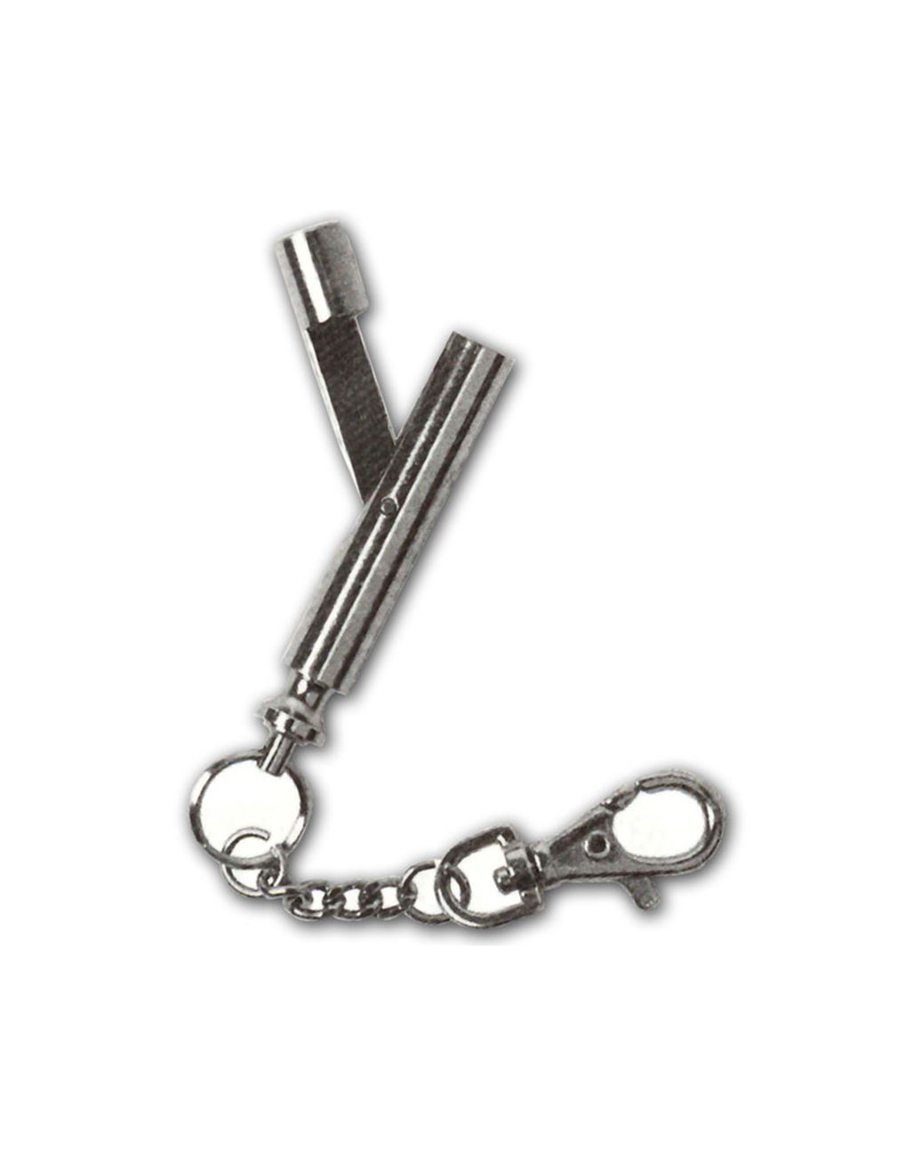 Evans Flip Key with a shaft that folds closed into the handle, the Compact Flip Key can be stored easily in a pocket or hung from a keychain or lanyard using the detachable clasp.