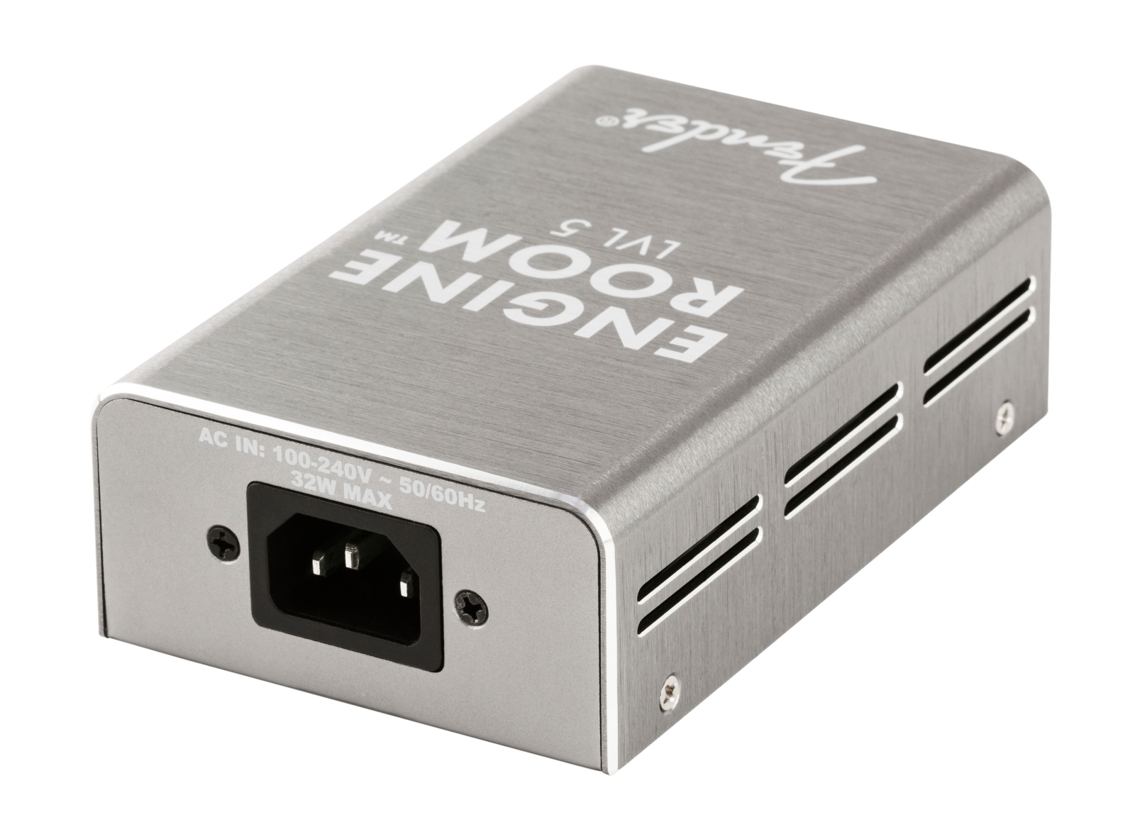 Pedals need clean, isolated power and Fender’s Engine Room® LVL5 Power Supply is capable of the task. Featuring five ground isolated power outlets, each outlet is capable of 9Vdc at 500mA to keep your pedals performing at their peak. Works as a standalone power supply for smaller pedalboards or can be daisy-chained with our LVL 12 for those tone fanatics with larger boards.