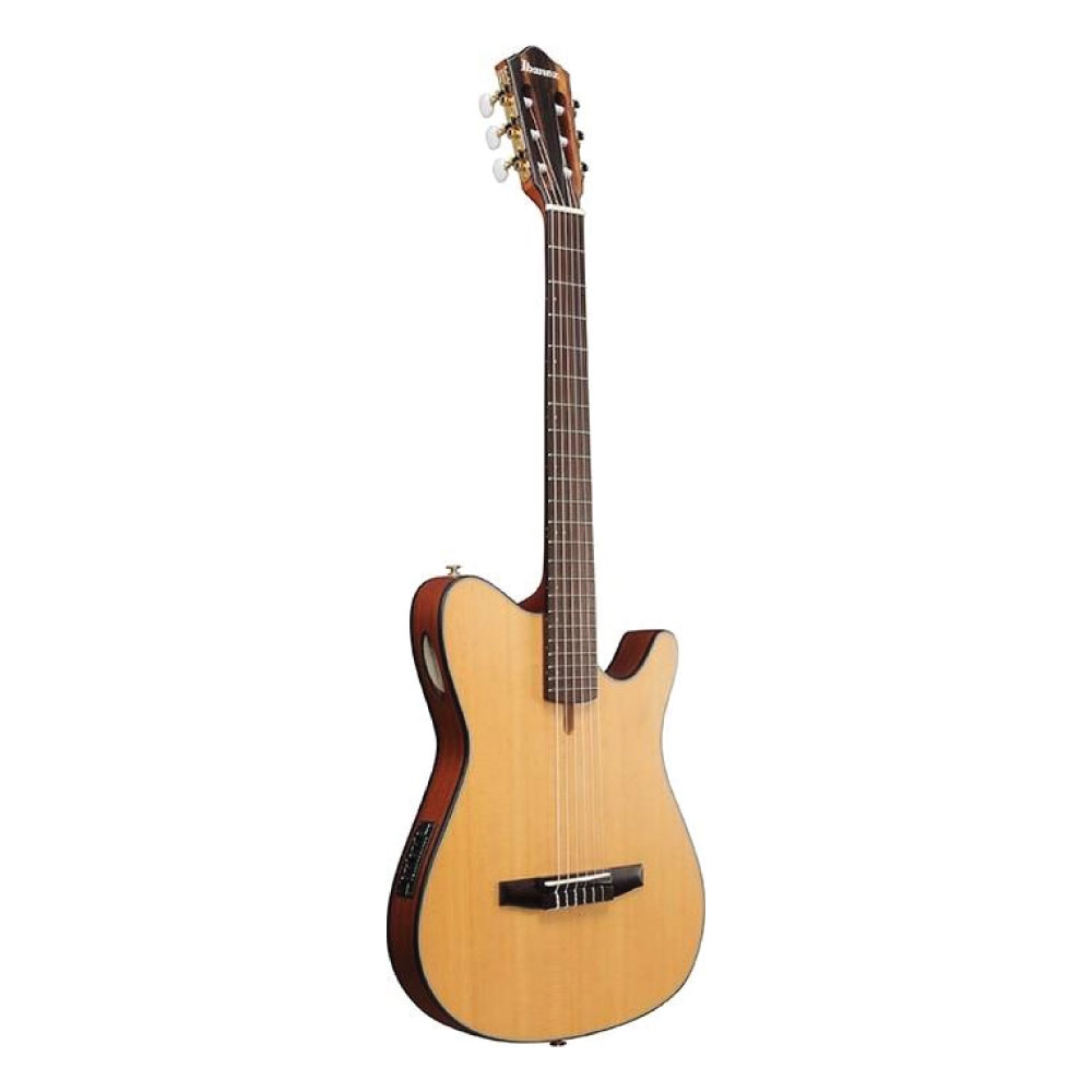 The Ibanez FRH10N-NTF is a modern nylon-string acoustic-electric guitar designed for players who want the warm tone of nylon strings with the feel and comfort of a slim, contemporary instrument. Its thin body design makes it especially comfortable for electric and steel-string players transitioning to nylon.