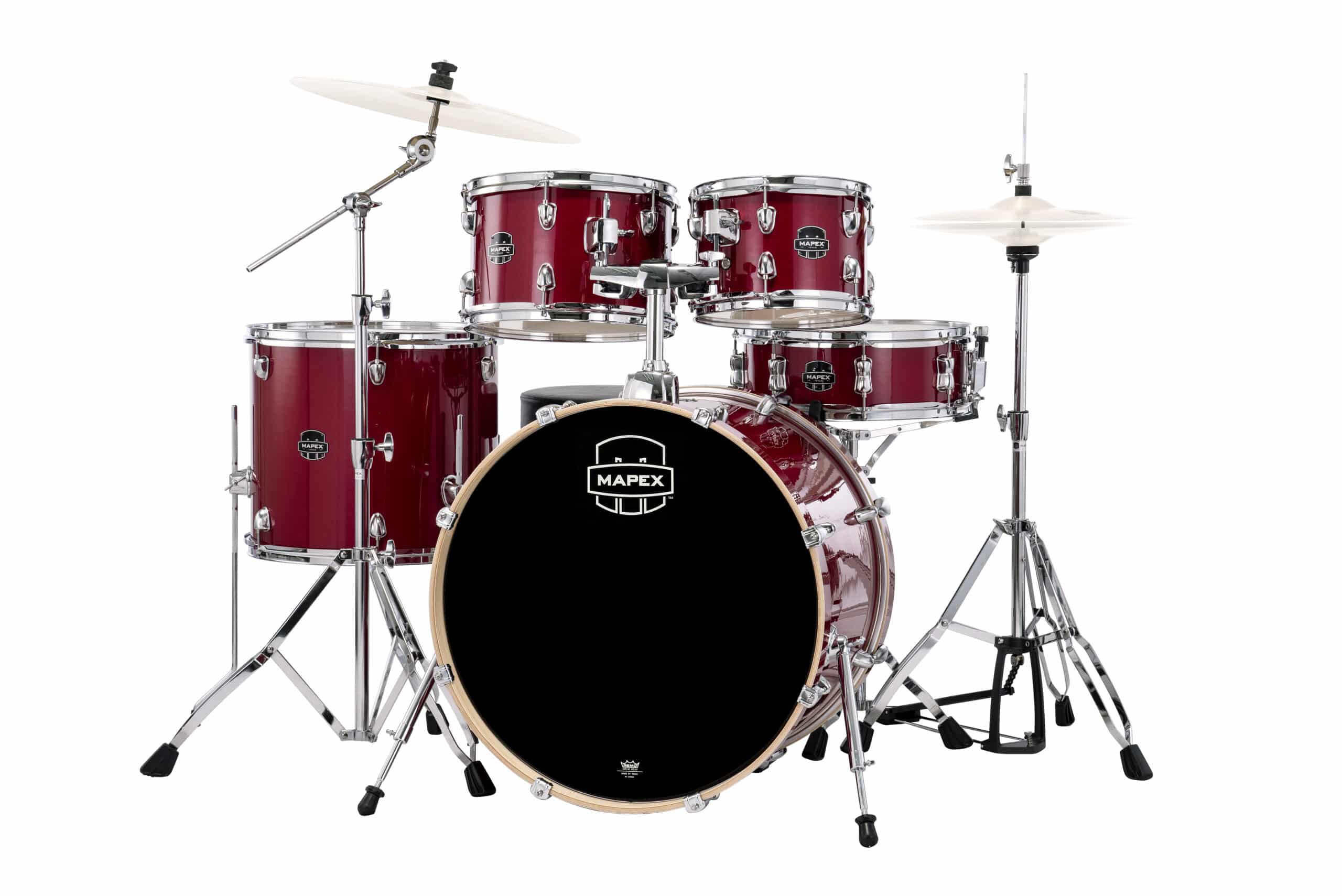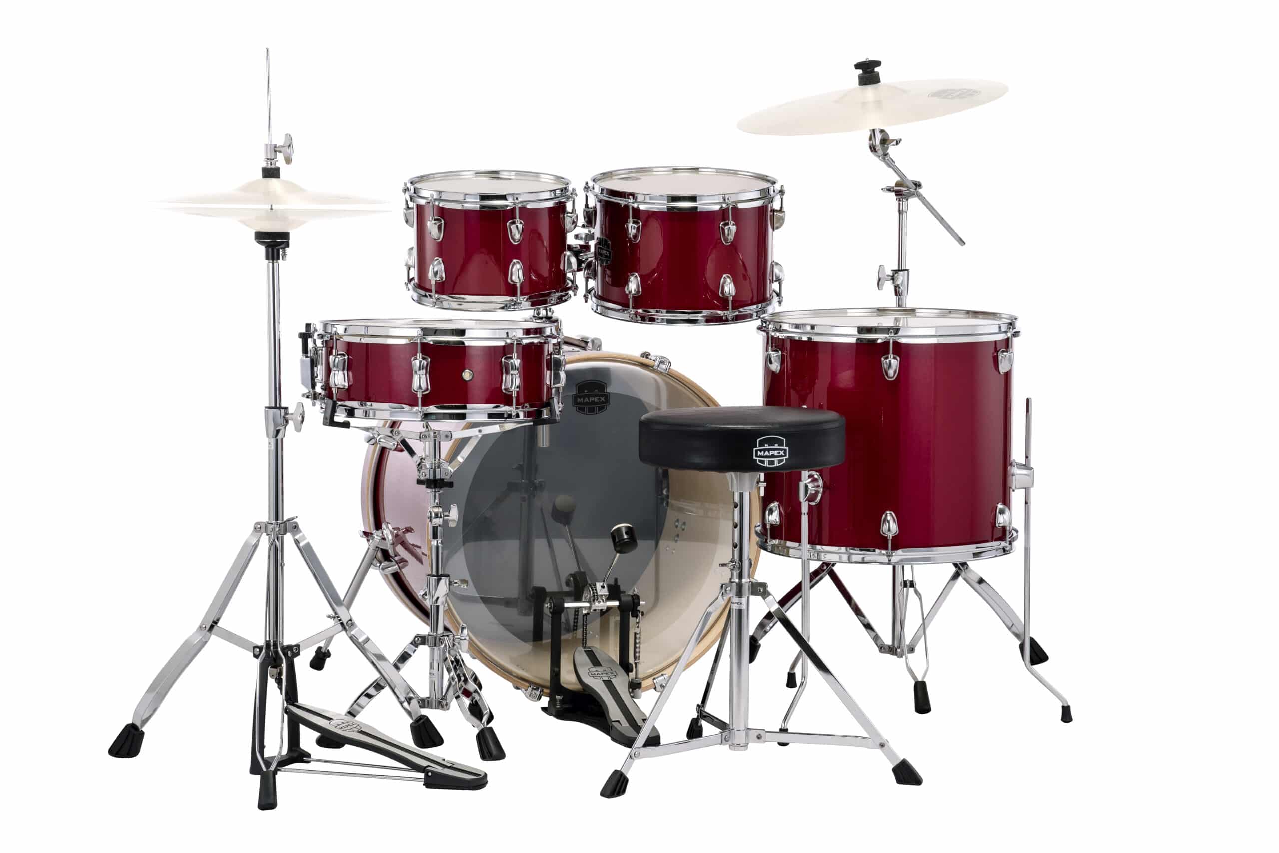 The Mapex Venus Drum Kit presents an all-inclusive setup for the first-time player ready to start the “Drummer for Life” adventure. The 100% poplar shells appointed with Mapex SONIClear™ bearing edges produce rich tones from the toms, a robust crack from the snare drum and a punchy low thump from the bass drum.