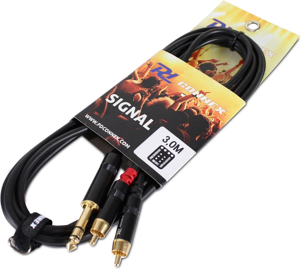 PD Connex professional HQ 1,5 meter 6,3 Jack (stereo) – 2x RCA (M) OFC signal cable. This extremely flexible signal cable is fitted with high quality metal connectors and guarantees a trouble-free and reliable signal transmission.
