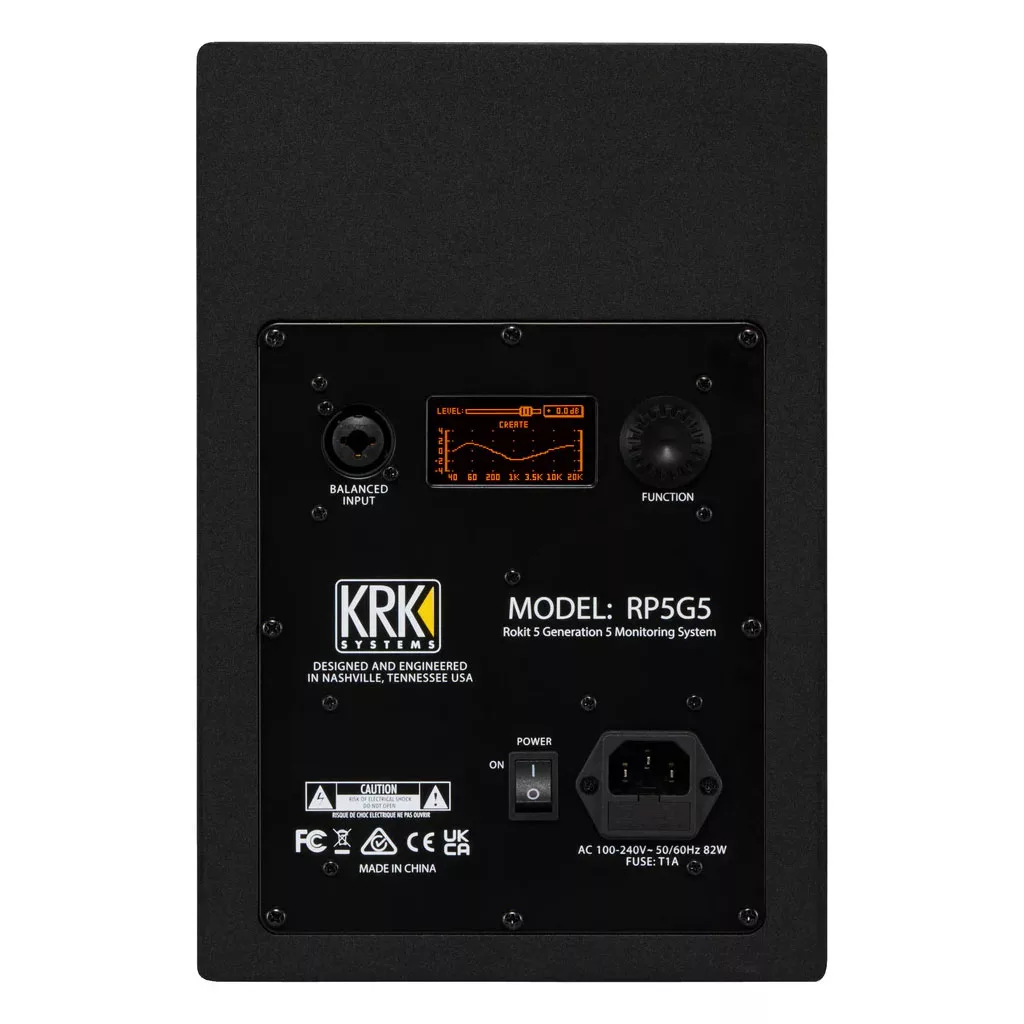 The KRK Systems ROKIT 5 Generation Five is the most advanced studio monitor in its class. Whether you’re working on a chart-topping hit, a film score, or a personal project, they provide the tools you need to capture every nuance of your sound with astonishing clarity. Part of the Fifth Generation of KRK ROKIT Studio Monitors, along with the ROKIT 7 Generation Five and ROKIT 8 Generation Five, their onboard DSP technology provides three distinct Voicing Modes. Mix Mode, with flat frequency and phase response, is best for mixing, mastering, and critical listening. Create Mode is a more inspirational voicing best used for writing, producing, and casual listening. Focus Mode is a mid-focused voicing for critical analysis of the midrange band where vocals and most instruments have the most energy. The three Mix Modes eliminate the need for separate sets of monitors for different tasks. It’s like having three pairs of monitors in one. The ROKIT 5 Generation Five also features 25 boundary and tuning EQ combinations that help minimize and correct problems in your acoustic environment, and with the aid of the free KRK App, they make setting up your recording environment easy and precise.