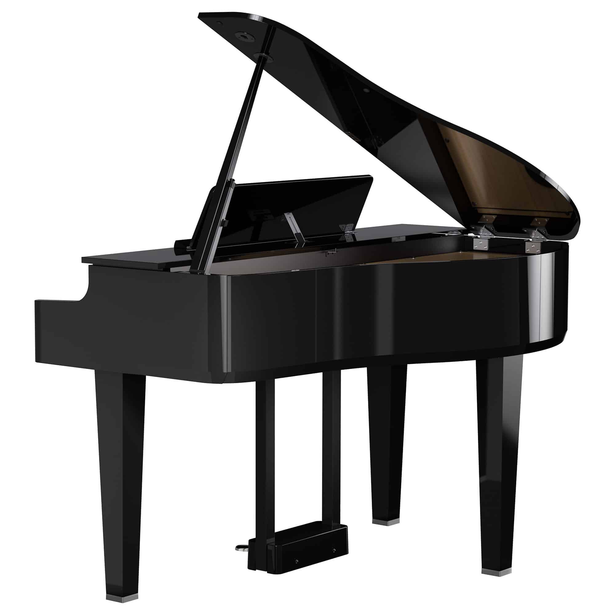 With its striking design and flowing curves, the GP-6 brings you majestic piano luxury in a reduced footprint compared to a larger grand piano. And while the size may be streamlined, you still get the no-compromise performance of a full-scale instrument. Like an acoustic grand, there’s a top lid that opens for broader sound projection and a retractable cover to protect the keys when not in use. Minimalist touch buttons disappear into the panel when the backlighting is turned off, allowing you to maintain the acoustic aesthetic and eliminate distractions while playing.