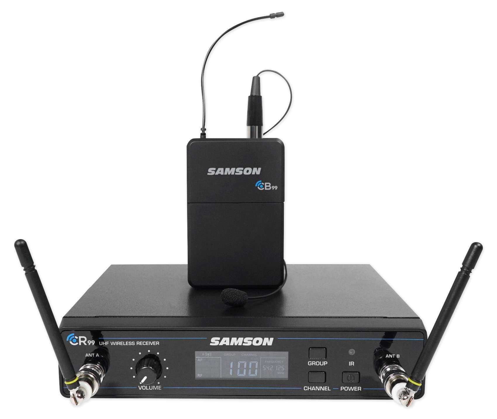 Samson‘s Concert 99 Presentation combines 80 channels of high-definition audio and extreme reliability into a rugged all-metal, rack-mountable chassis with a stage-ready backlit display. With simple 1-touch setup, convenient monitoring, a 300’ UHF operating range and impressive transmitter battery life, this frequency-agile system offers unprecedented value to presenters, educators and others in search of reliable wireless freedom.