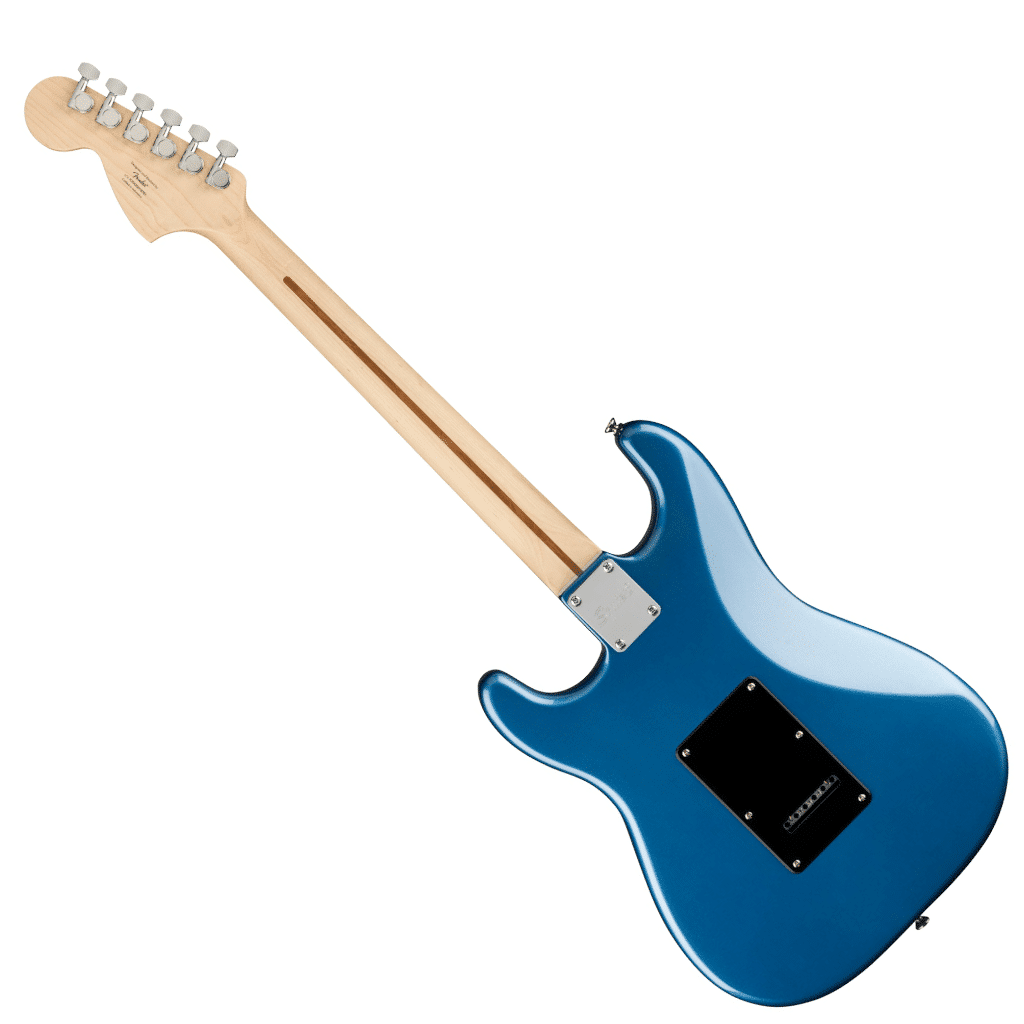 Stand out on stage with the Squier Affinity Series Stratocaster – Lake Placid Blue. This instrument combines the quintessential Stratocaster sound with a stunning metallic finish that was originally a custom color for Fender in the 1960s. Because it features a shimmering Lake Placid Blue body paired with a black pickguard and a bright maple fingerboard, it offers a cool, modern aesthetic that looks as electrifying as it sounds.