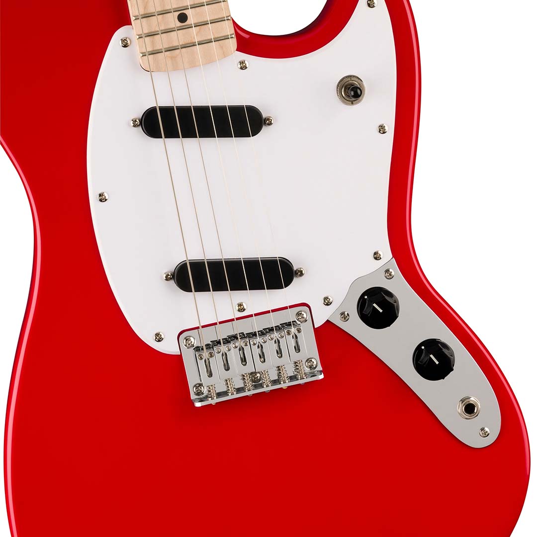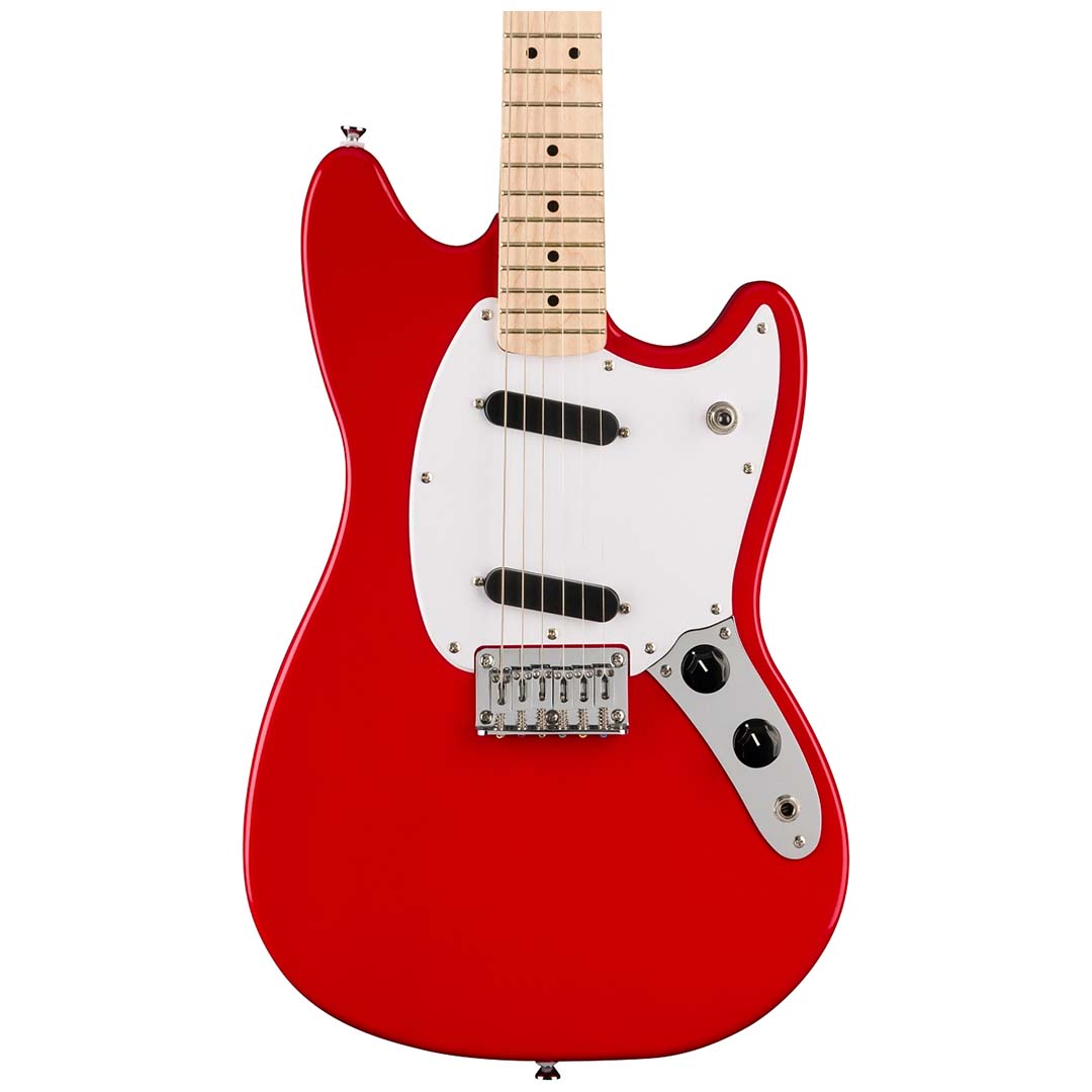 Break new ground with the Squier Sonic Mustang – Torino Red. This instrument brings the legendary offset design of the Mustang into a lightweight, comfortable package that is perfect for any stage. Because it features a 24-inch short scale length and a thin, contoured body, it provides an easy playing experience that makes it an ideal choice for players with smaller hands or those who prefer a more agile guitar.