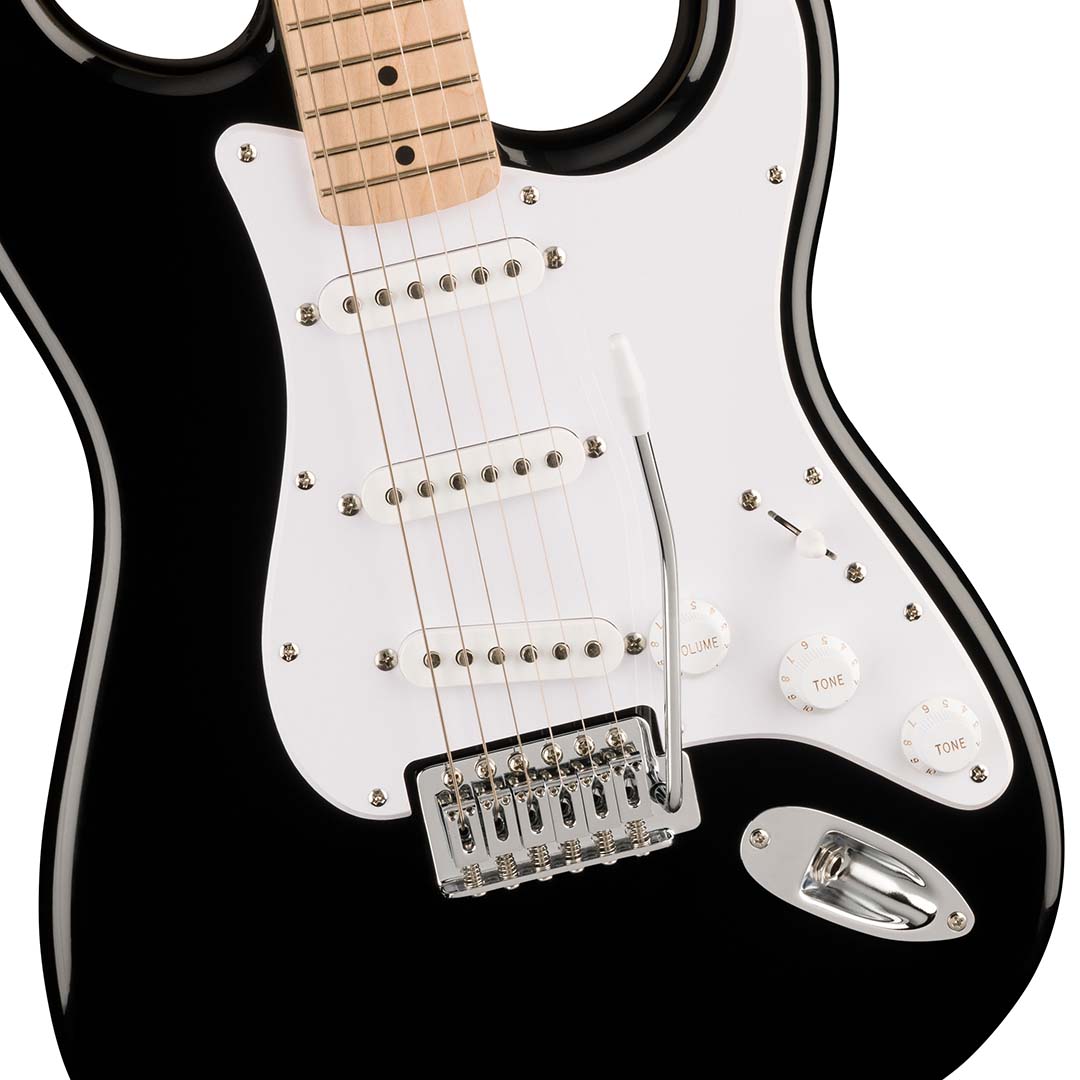 Start your musical journey with the Squier Sonic Stratocaster – Black. This instrument captures the most famous look in rock history—the “tuxedo” style Black and White Stratocaster—in a player-friendly package. Because it features a thin, lightweight body and a comfortable “C”-shaped neck profile, it provides an effortless playing experience that inspires you to pick it up and play every day.