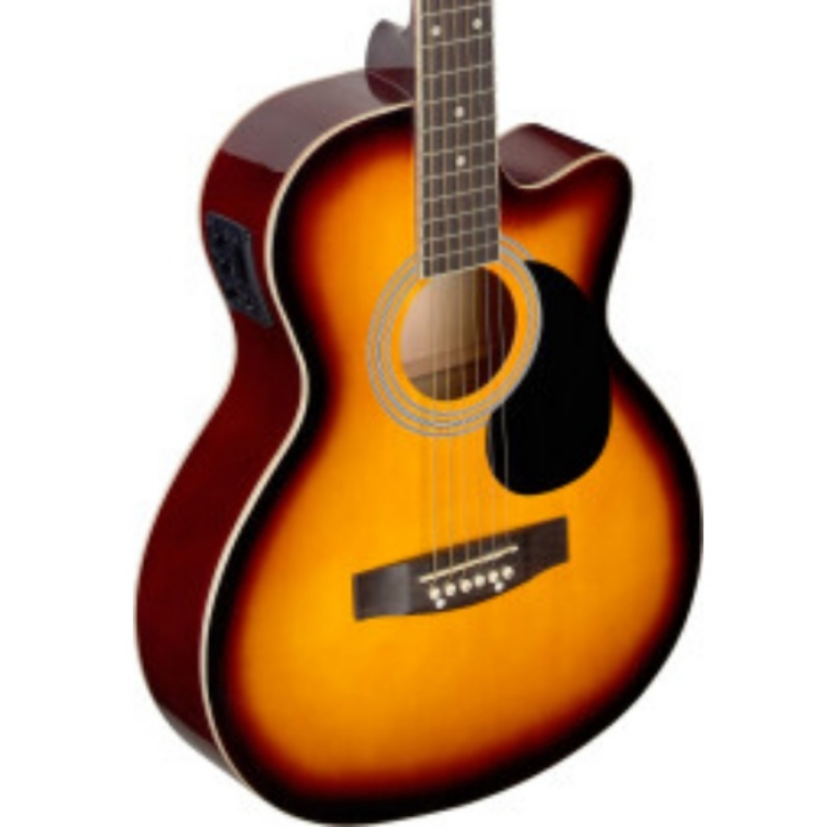 Perform with style and versatility using the Stagg SA20A CE SNB Acoustic-Electric Guitar. This instrument features a stunning high-gloss sunburst finish on a comfortable auditorium body. Because it includes an onboard preamp system, you can easily plug into an amp or PA system for live performances without needing external microphones.