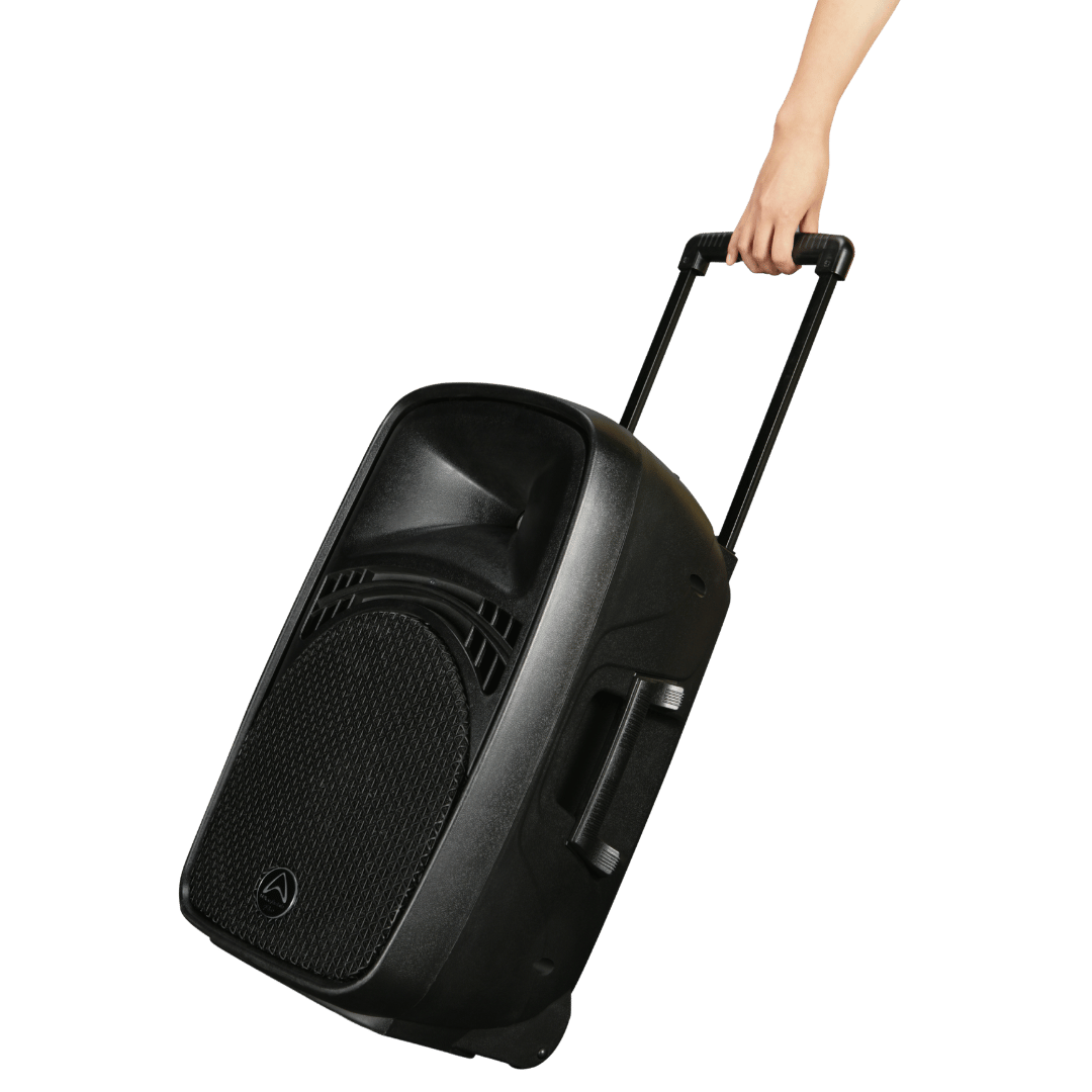 - Ultimate Mobility: The EZ-12A is designed for movement. It features an internal lead-acid battery that provides up to 5 hours of runtime. Additionally, the retractable trolley handle and durable wheels make transport effortless. As a result, you can roll into any venue, set up in seconds, and start the show immediately.