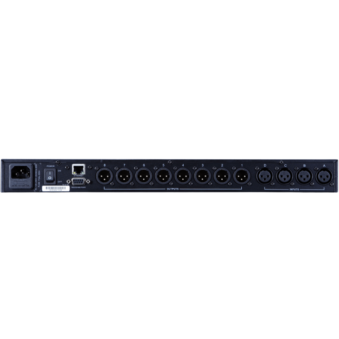With four input channels and eight fully routable outputs, it offers comprehensive matrix flexibility for complex PA configurations. Each output includes RMS compressors and peak limiters, ensuring robust loudspeaker protection and stable long-term performance.