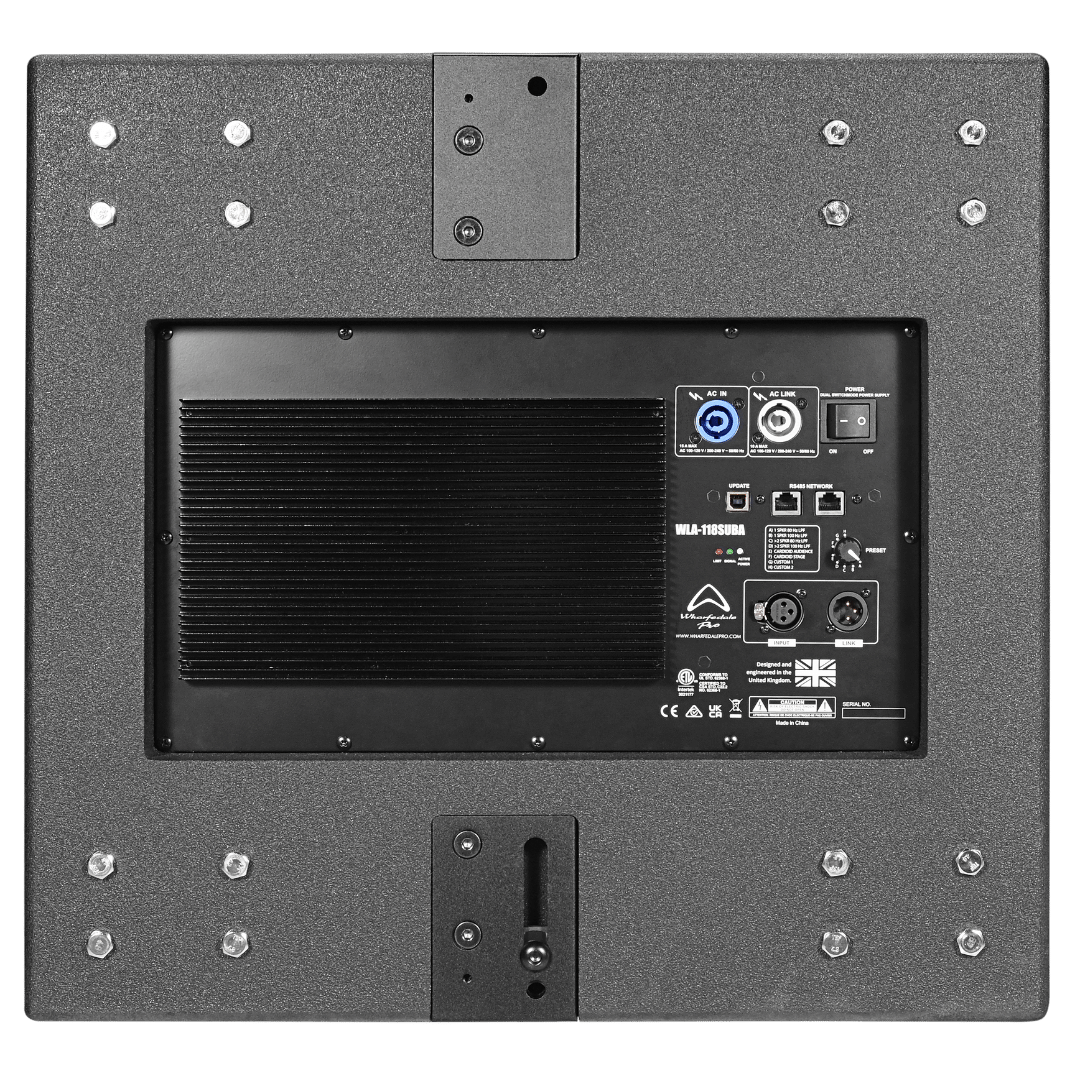 Handling 2200 W continuous (up to 4400 W peak) and delivering a maximum SPL of 136 dB @ 1 m, WLA-118SUBA delivers tight, impactful low-end performance. Designed for flexibility, it can be flown, pole-mounted or ground-stacked alongside WLA-1A full-range elements, forming a powerful and versatile foundation for professional touring or installation setups.
